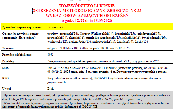 OSTRZEŻENIA METEOROLOGICZNE IMGW